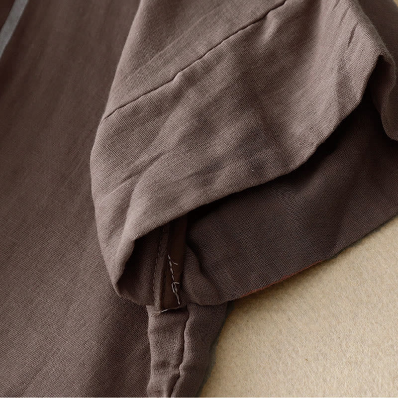 Buddha Stones Casual Line Printing Pattern Short Sleeve Cotton Linen Women's T-Shirt - image 15