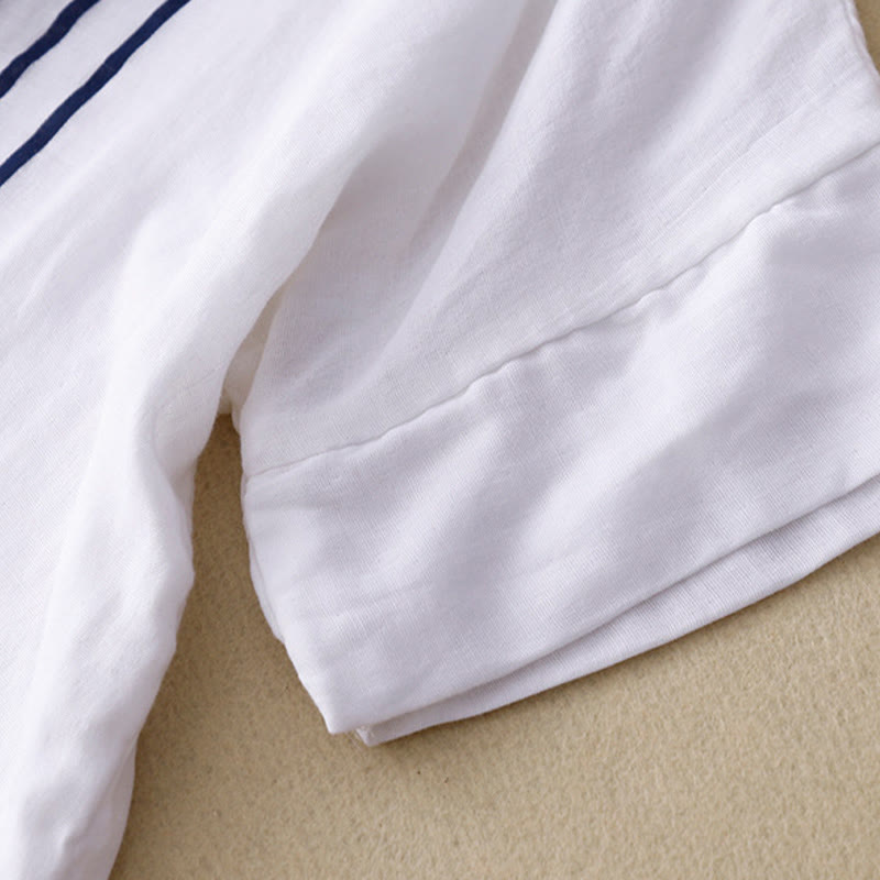 Buddha Stones Casual Line Printing Pattern Short Sleeve Cotton Linen Women's T-Shirt