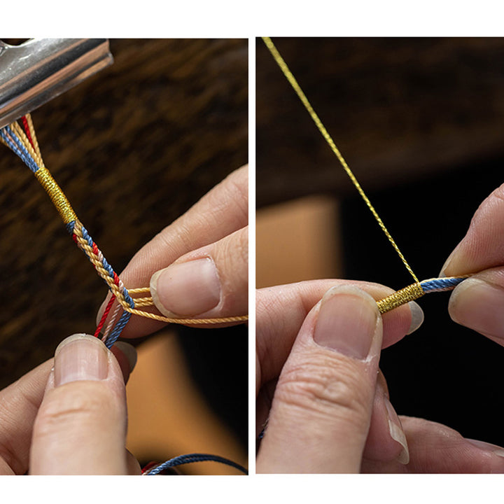 Buddha Stones Handmade Dunhuang Color Peach Blossom Pattern Braid String Bracelet