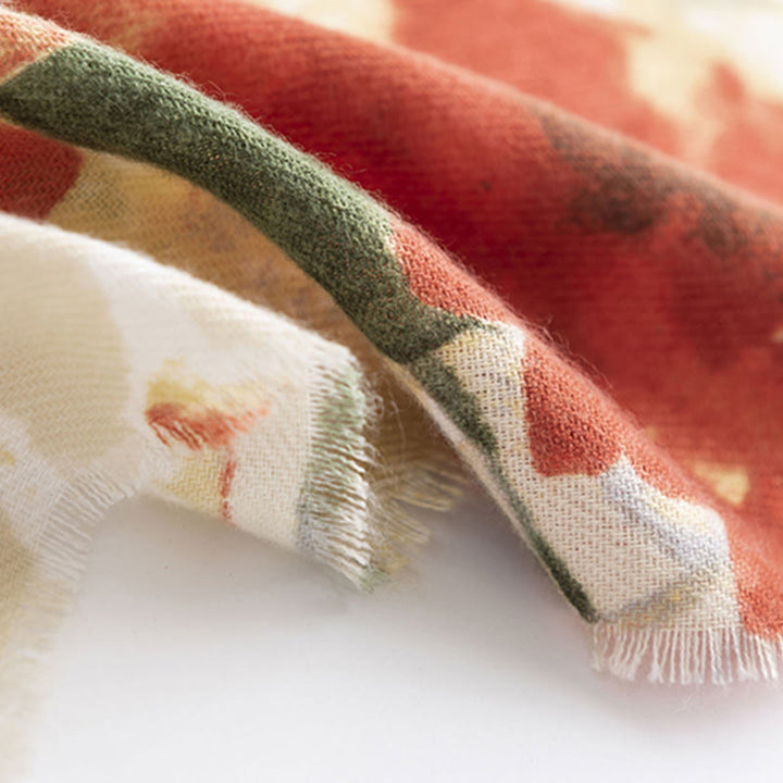 Buddha Stones Tibetan Chinese Retro Ink Painting Flower Print Shawl Fall Winter Cozy Warm Scarf Wrap