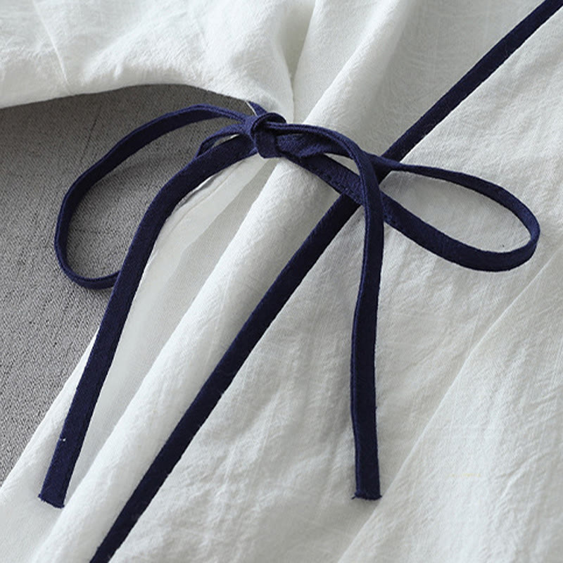 Buddha Stones Casual Color Stitching V-Neck Three Quarter Sleeve Zen Cotton Linen Women's Shirt - White - US8-10,UK/AU12-14,EU40-42 (2XL) - image 5