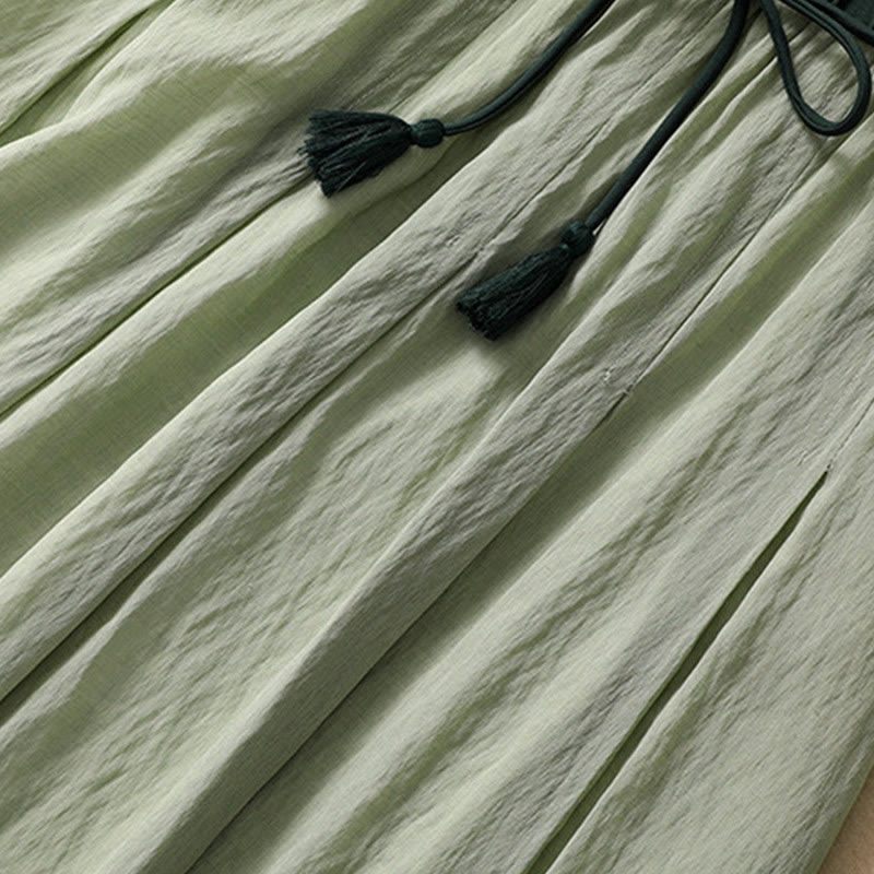 Buddha Stones Casual Contrasting Color Pleated Lace-Up Design Women's Cotton Linen 7-8 Length Skirt - LightGreen - US8-10,UK/AU12-14,EU40-42 (2XL) - image 23