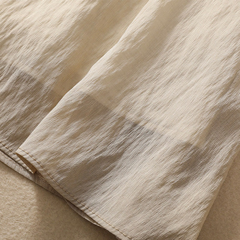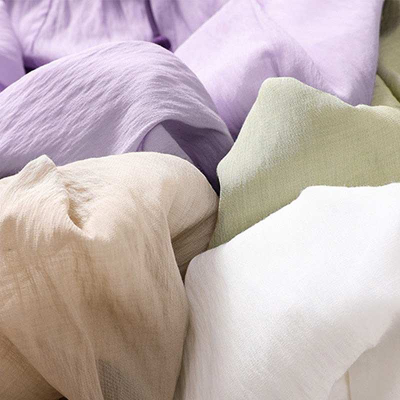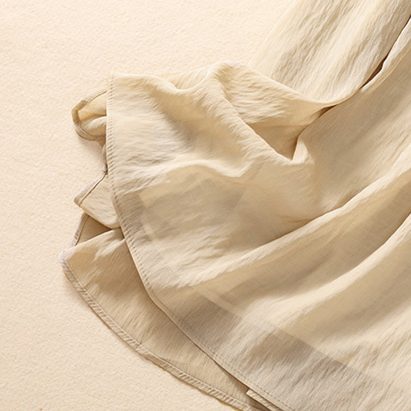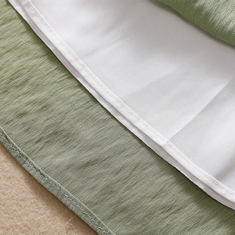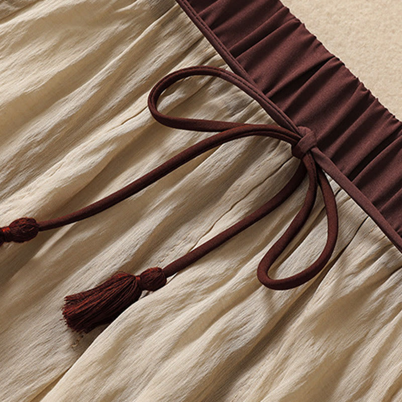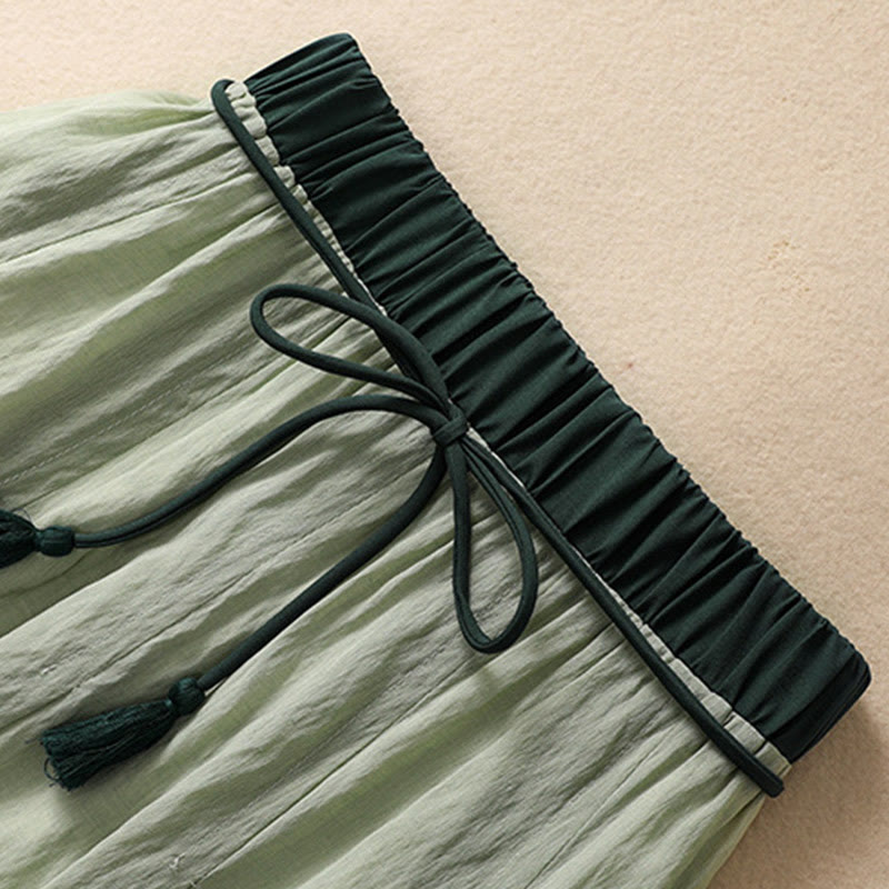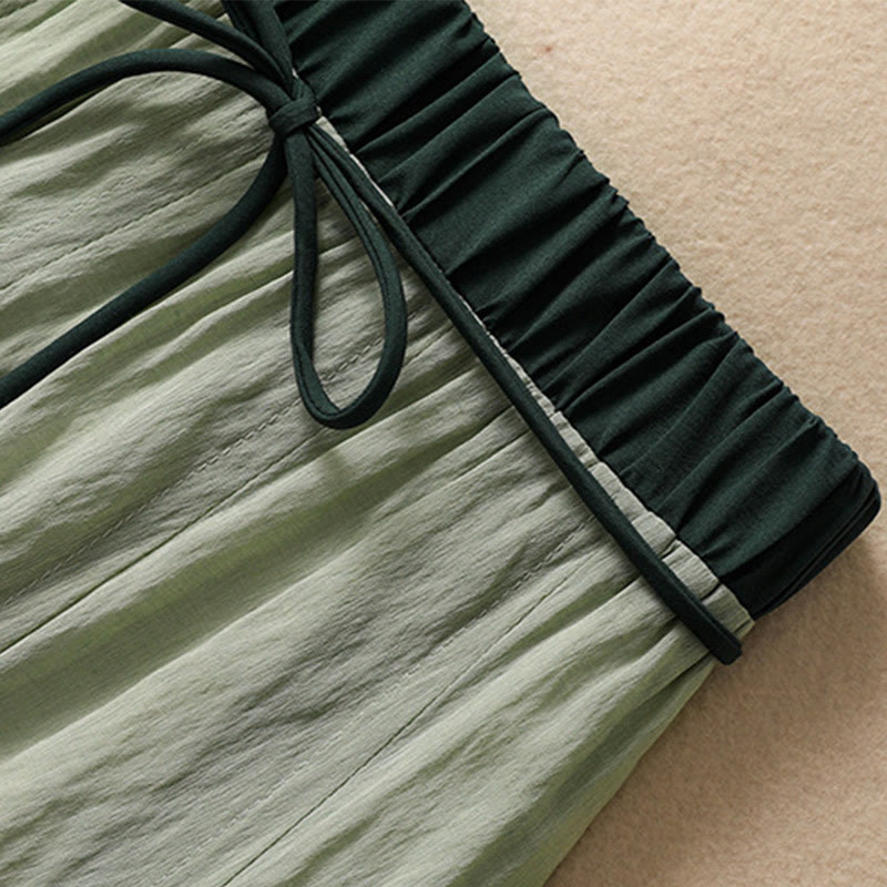 Buddha Stones Casual Contrasting Color Pleated Lace-Up Design Women's Cotton Linen 7-8 Length Skirt