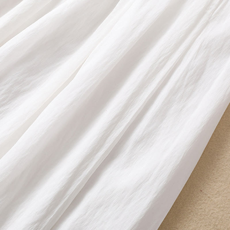 Buddha Stones Casual Contrasting Color Pleated Lace-Up Design Women's Cotton Linen 7-8 Length Skirt - White - US8-10,UK/AU12-14,EU40-42 (2XL) - image 10