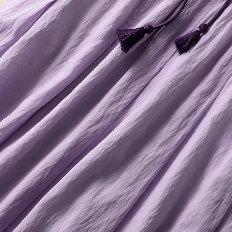 Buddha Stones Casual Contrasting Color Pleated Lace-Up Design Women's Cotton Linen 7-8 Length Skirt - Plum - US8-10,UK/AU12-14,EU40-42 (2XL) - image 16