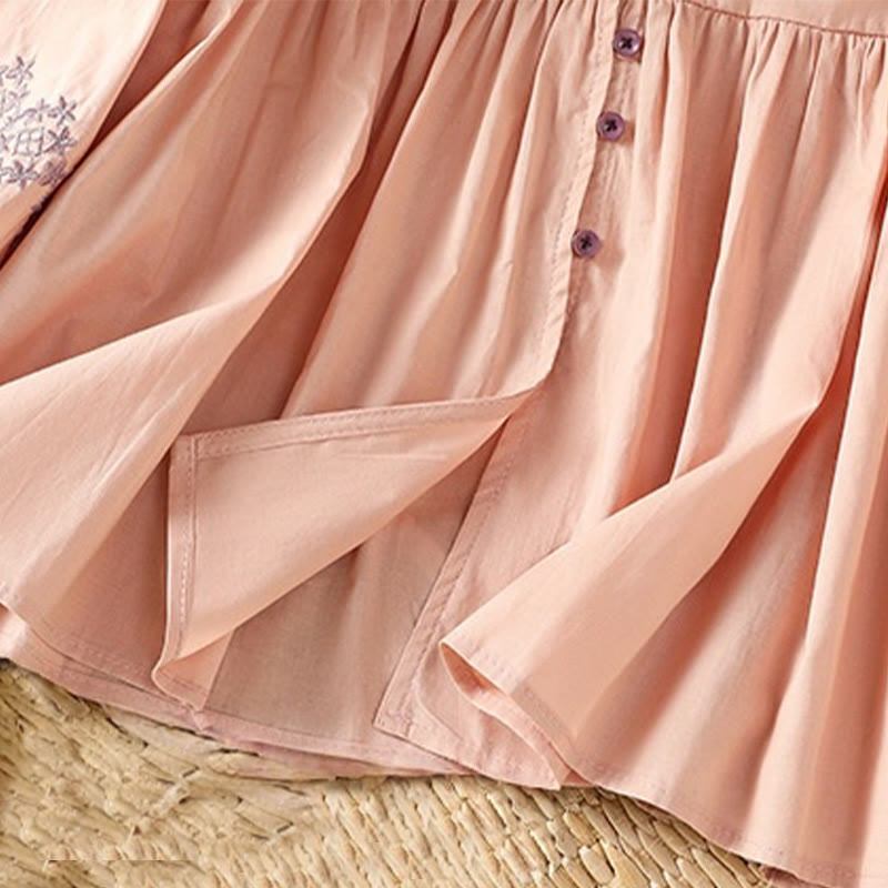 Buddha Stones Embroidery Pleated Buttons Long Lantern Sleeve Women's Cotton Shirt - LightSalmon - US12,UK/AU16,EU44 (2XL) - image 9