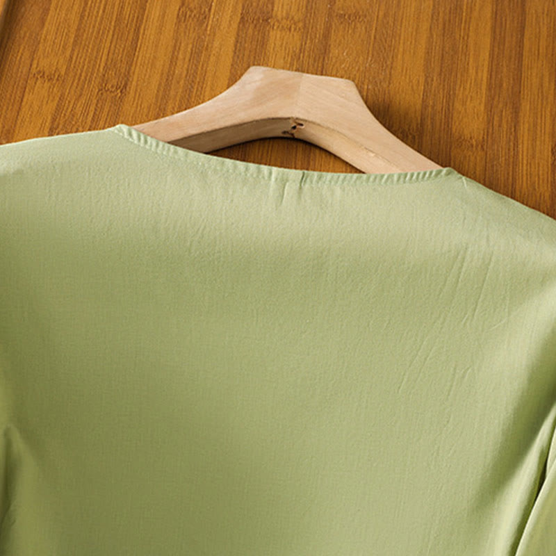 Buddha Stones Embroidery Pleated Buttons Long Lantern Sleeve Women's Cotton Shirt - YellowGreen - US12,UK/AU16,EU44 (2XL) - image 19
