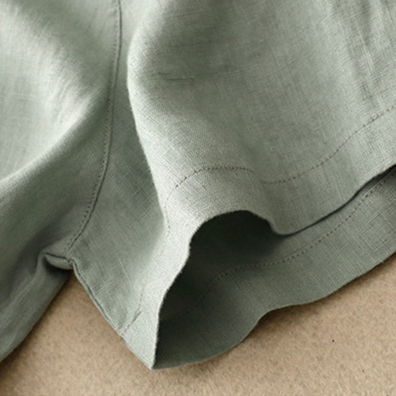 Buddha Stones Casual Plain Button Crew Ruffle Neck Short Sleeve Cotton Linen Women's Midi Dress - LightGreen - US14,UK/AU18,EU46 (2XL) - image 0