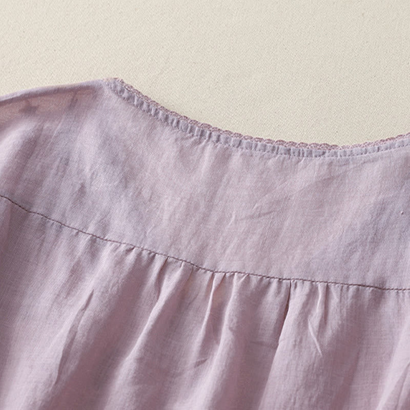 Buddha Stones Casual Shooting Star Embroidery V-Neck Half Sleeve Cotton Linen Women's Shirt - image 17
