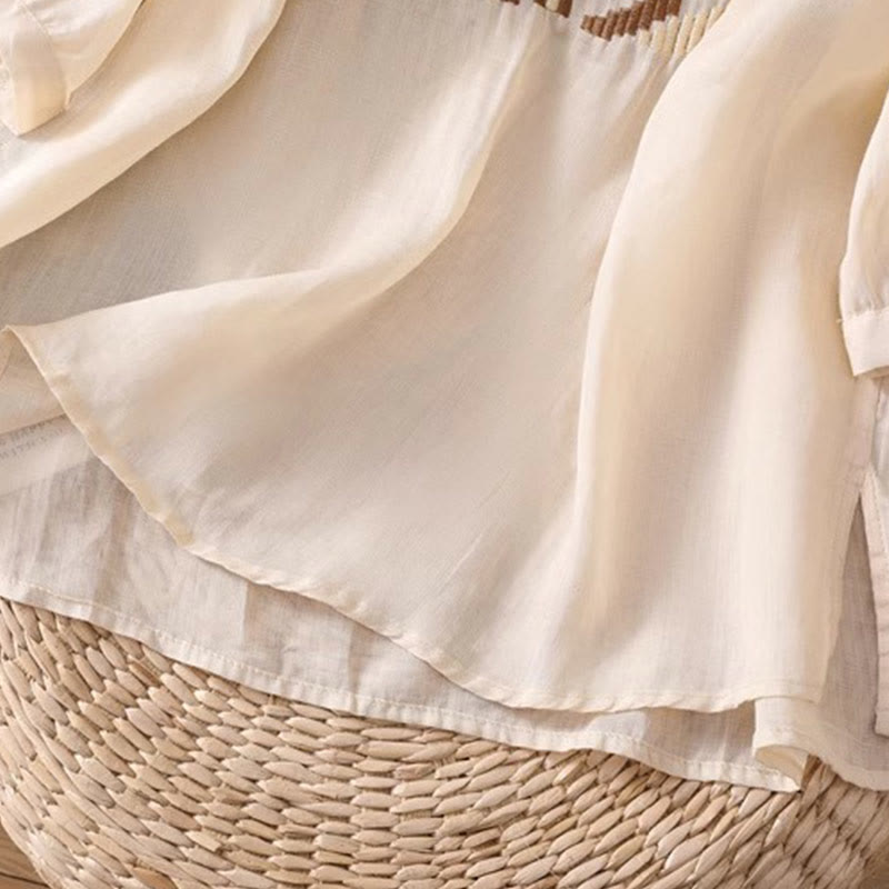 Buddha Stones Casual Symmetrical Embroidery Women's Crew Neck Design Half Sleeve Spandex T-shirt - Beige - US14,UK/AU18,EU46 (4XL) - image 33