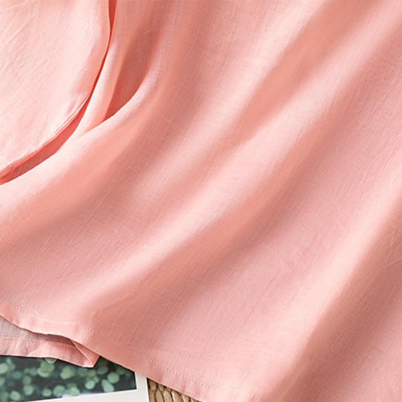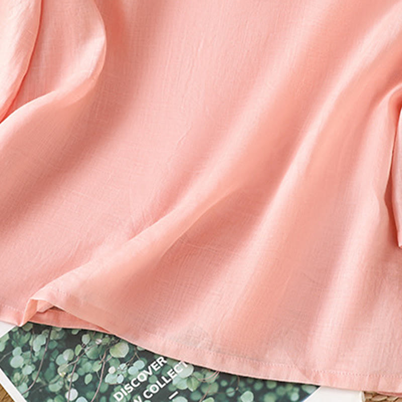 Buddha Stones Casual Women's Flowers Leaves Embroidery Pattern Frog-Button Crew Neck Design Half Sleeve Cotton Linen Shirt - LightPink - US8-10,UK/AU12-14,EU40-42 (2XL) - image 6