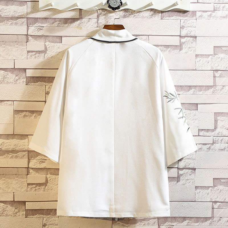 Buddha Stones Embroidery Dragon Phoenix Auspicious Cloud Waves Leaves Cranes Open Front Jacket Men's Kimono - Leaves-White - US/UK/AU46,EU56 (5XL) - image 16