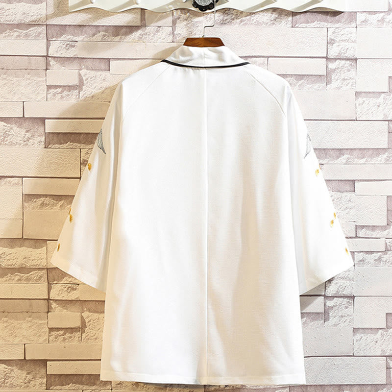 Buddha Stones Embroidery Dragon Phoenix Auspicious Cloud Waves Leaves Cranes Open Front Jacket Men's Kimono - White Crane-White - US/UK/AU46,EU56 (5XL) - image 43