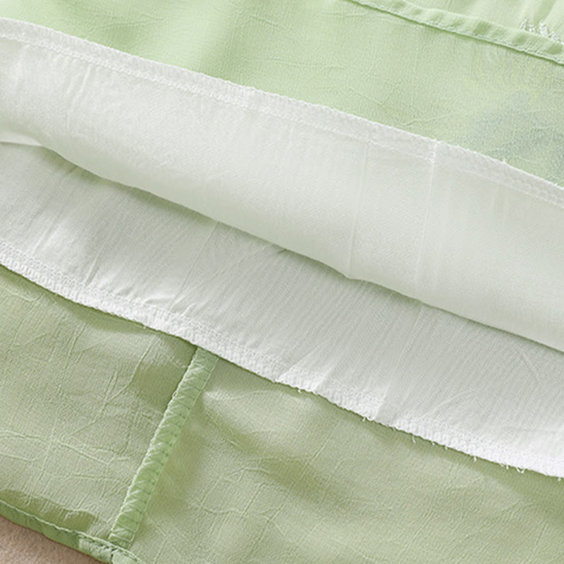 Buddha Stones Embroidery Plants Flower Half Sleeve Plain Frog-Button Stand Collar Women's Shirt - PaleGreen - US8-10,UK/AU12-14,EU40-42 (2XL) - image 0