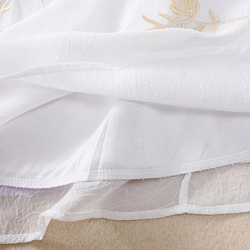 Buddha Stones Embroidery Plants Flower Half Sleeve Plain Frog-Button Stand Collar Women's Shirt - Snow - US8-10,UK/AU12-14,EU40-42 (2XL) - image 10