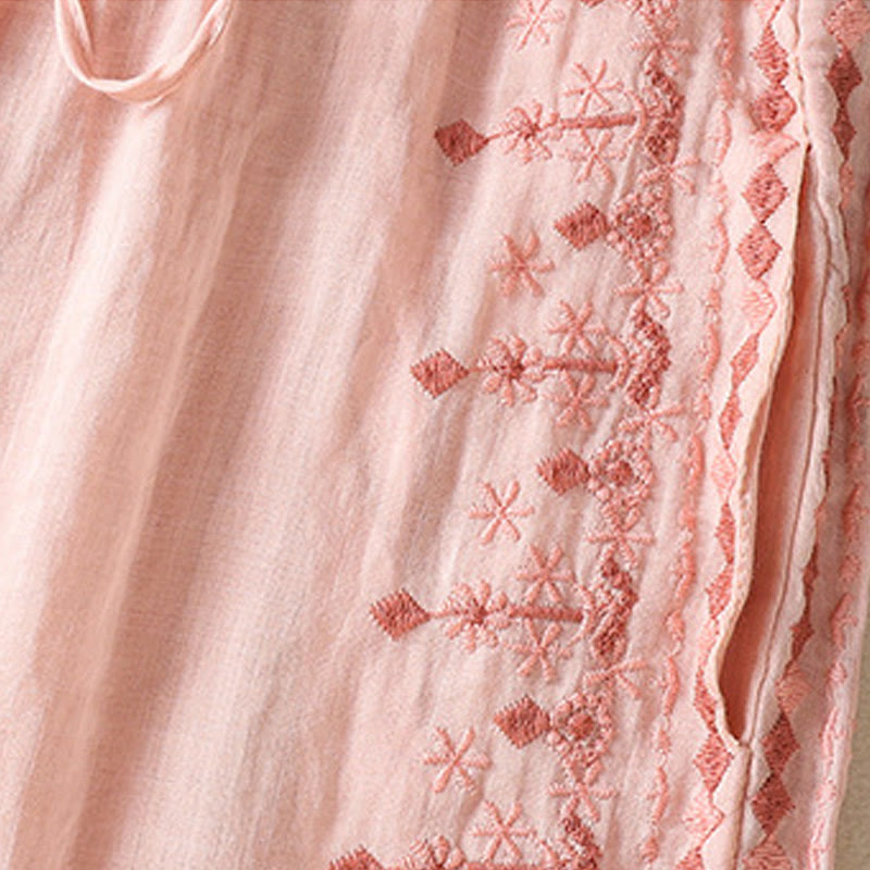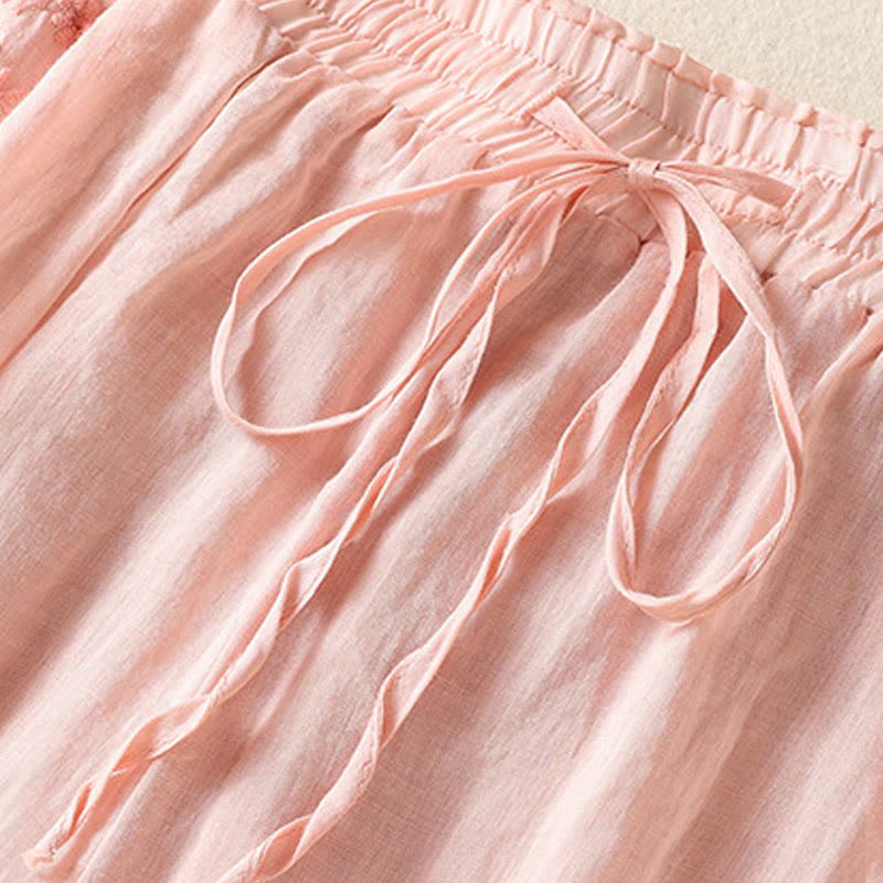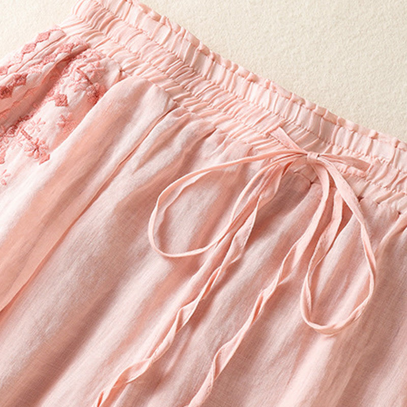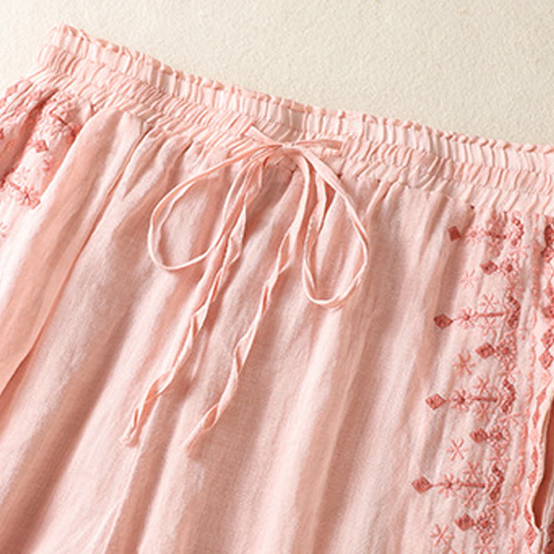 Buddha Stones Ethnic Embroidery Drawstring Cotton Linen Women's High Waist Wide Leg Pants With Pockets - LightPink - US8-10,UK/AU12-14,EU40-42 (2XL) - image 6