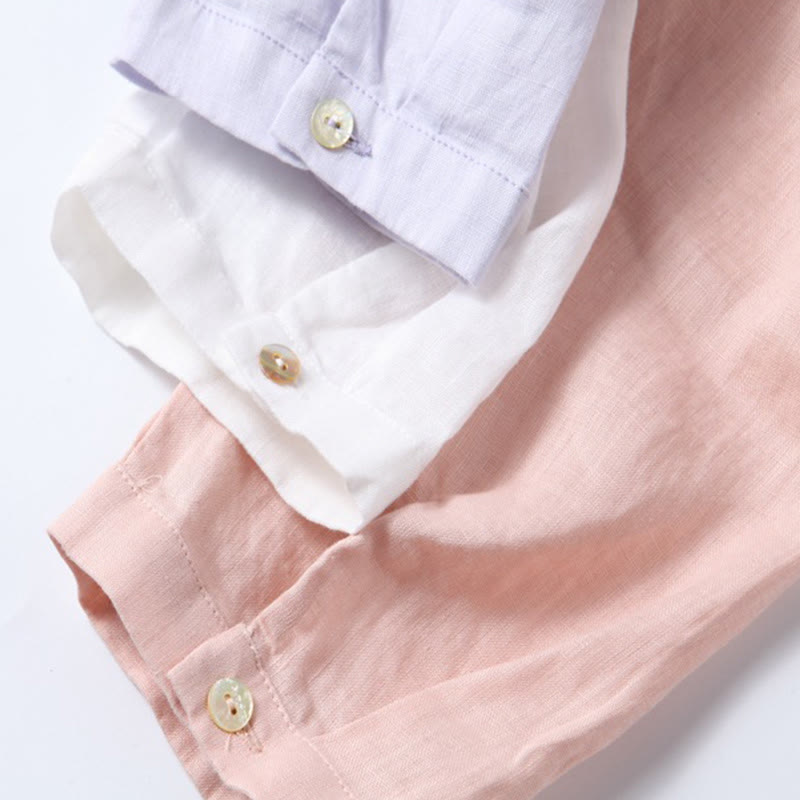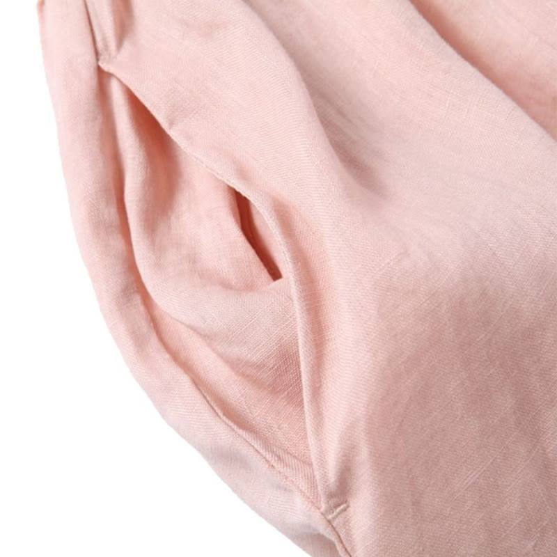 Buddha Stones Fall Vintage Embroidery Button Drawstring Design Cotton Linen Long Sleeve Midi Dress With Pockets - LightPink - US8-10,UK/AU12-14,EU40-42 (2XL) - image 0