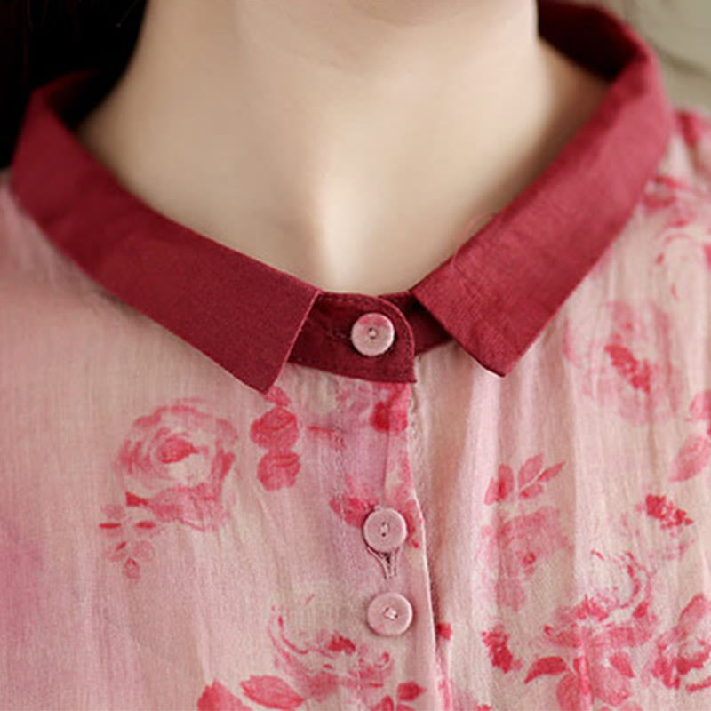 Buddha Stones Retro Printing Floral Pattern Drawstring Design Half Sleeve Cotton Midi Dress With Pockets - Magenta - US8-10,UK/AU12-14,EU40-42 (2XL) - image 12