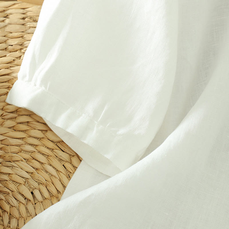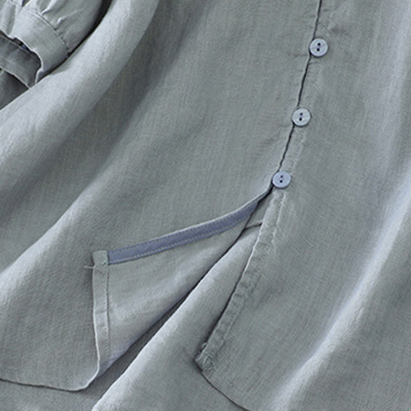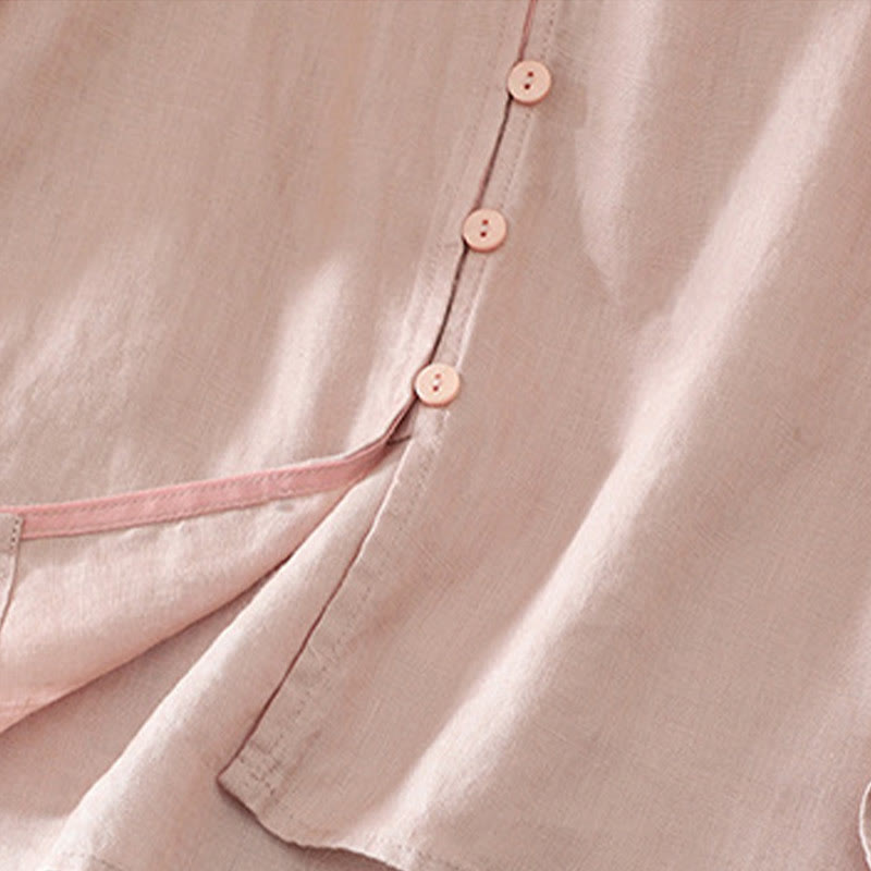 Buddha Stones Solid Buttons V-Neck Half Sleeve Women's Shirt