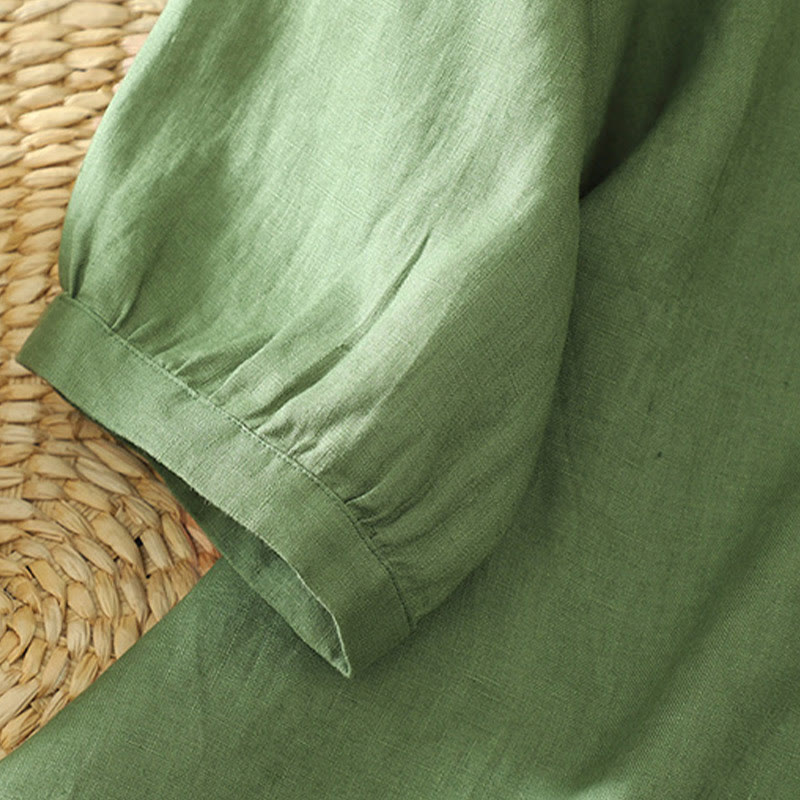 Buddha Stones Solid Buttons V-Neck Half Sleeve Women's Shirt - DarkSeaGreen - US12,UK/AU16,EU44 (2XL) - image 16