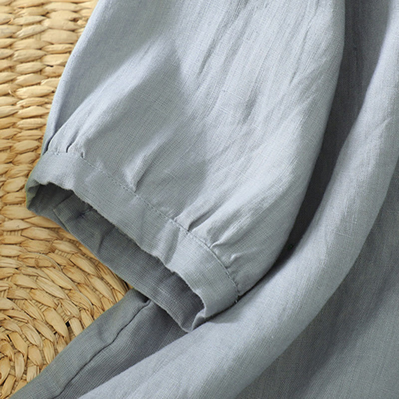 Buddha Stones Solid Buttons V-Neck Half Sleeve Women's Shirt - LightSteelBlue - US12,UK/AU16,EU44 (2XL) - image 21