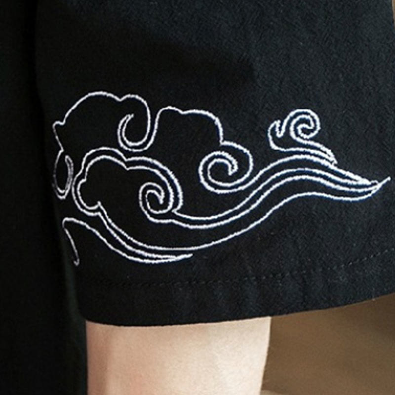 Buddha Stones Embroidery Open Front Jacket Cotton Linen Men's Three Quarter Sleeve Kimono