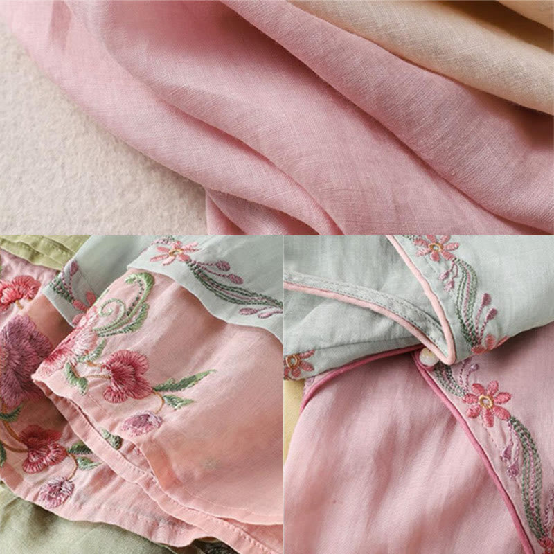 Buddha Stones Spring Retro Embroidery Button Design Three Quarter Sleeve Women's Cotton Shirt - LightPink - US14,UK/AU18,EU46 (4XL) - image 1