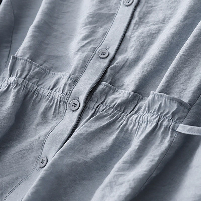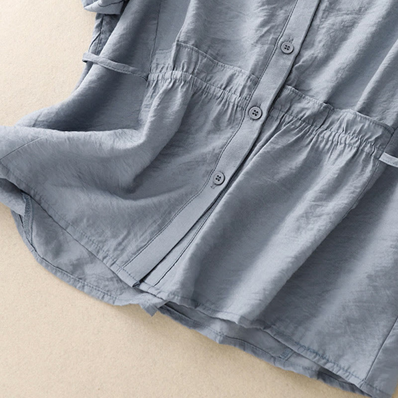 Buddha Stones Summer Button Lace-up Short Sleeve Women's Cotton Shirt