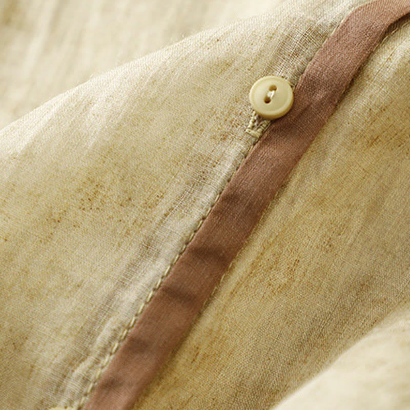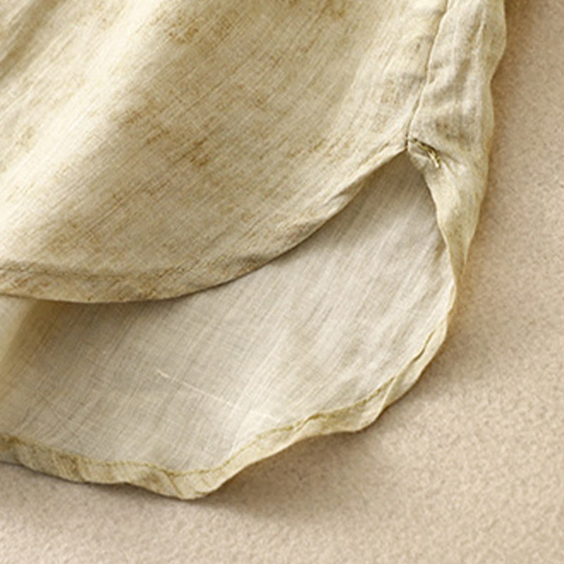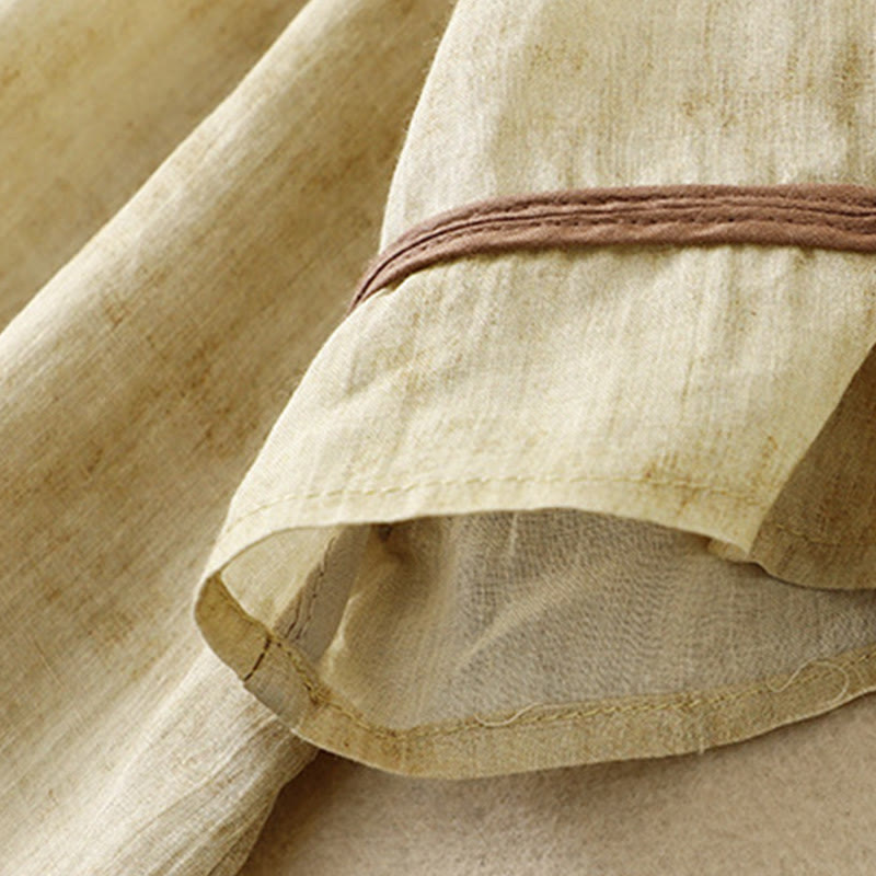 Buddha Stones Summer Casual Embroidered Stand Collar Design Three Quarter Sleeve Acrylic Midi Dress - LemonChiffon - US8-10,UK/AU12-14,EU40-42 (2XL) - image 7