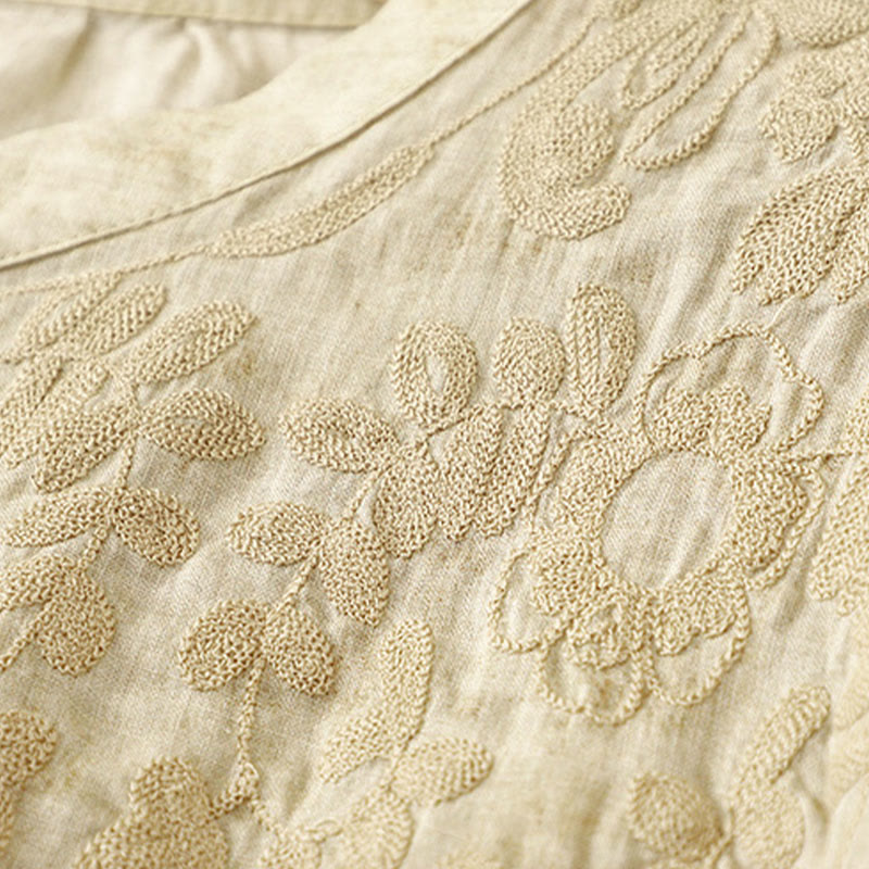 Buddha Stones Summer Casual Embroidered Stand Collar Design Three Quarter Sleeve Acrylic Midi Dress - image 15