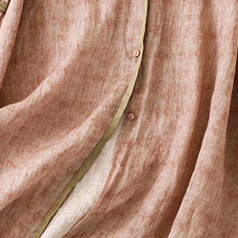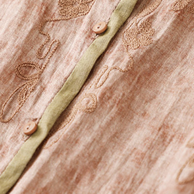 Buddha Stones Summer Casual Embroidered Stand Collar Design Three Quarter Sleeve Acrylic Midi Dress - LightCoral - US8-10,UK/AU12-14,EU40-42 (2XL) - image 6
