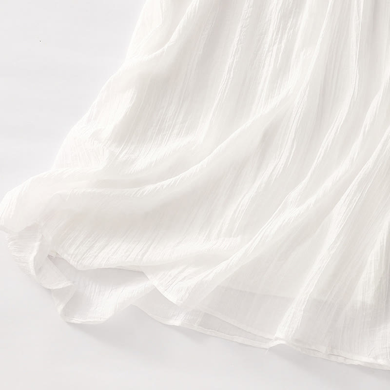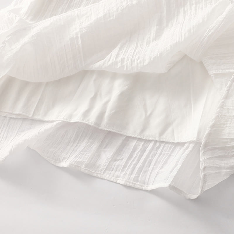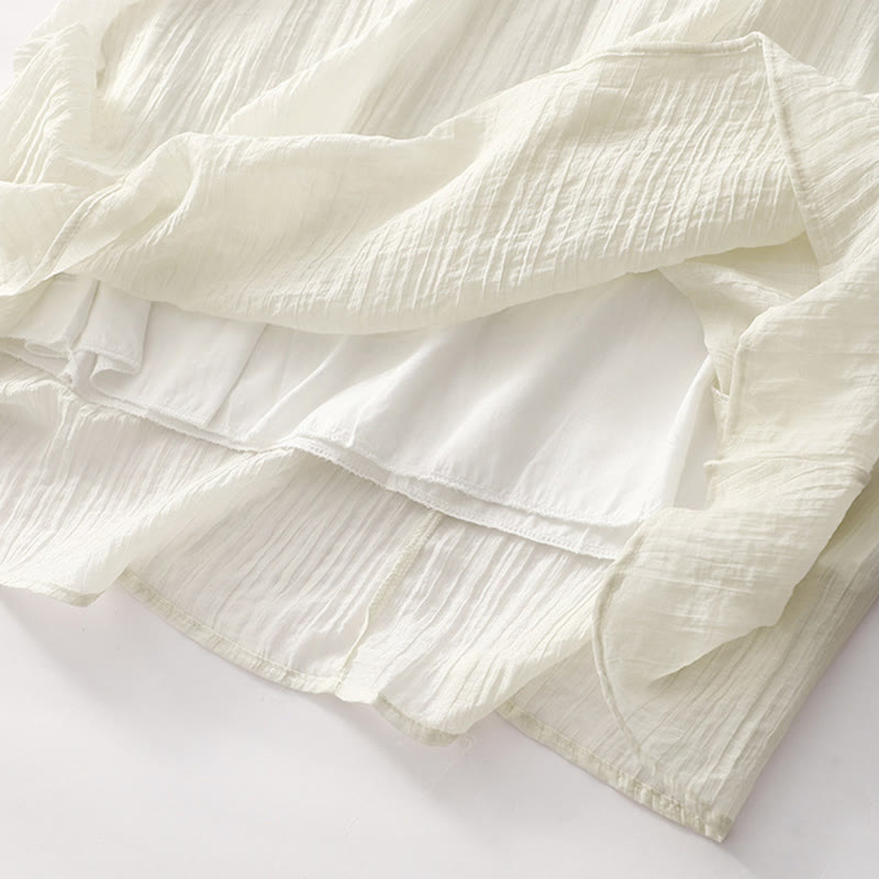 Buddha Stones Summer Casual Plain Embroidery Double Layer Short Sleeve Cotton Linen Midi Dress - White - US8-10,UK/AU12-14,EU40-42 (2XL) - image 21