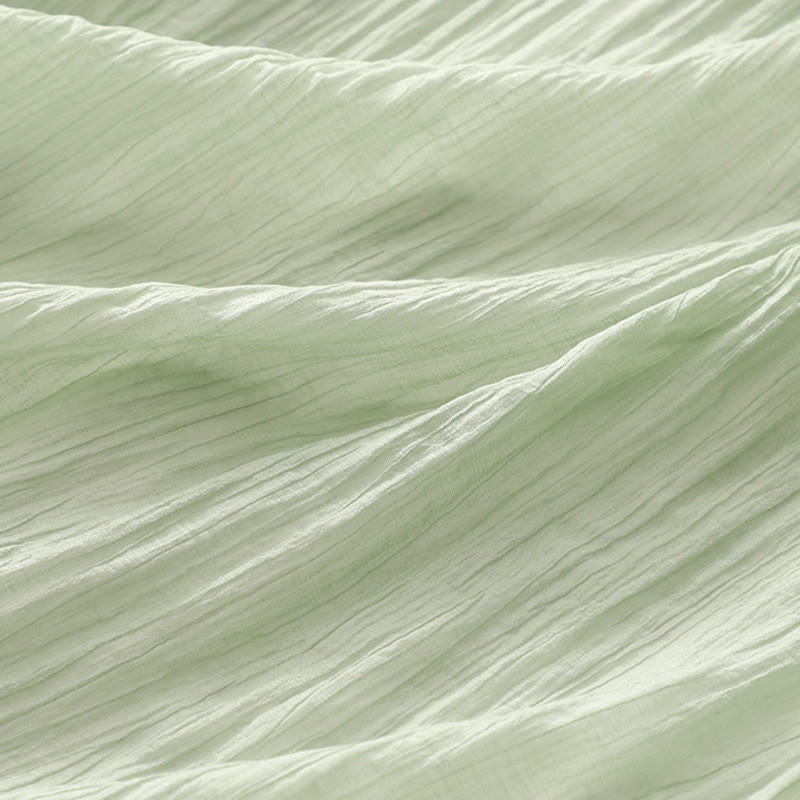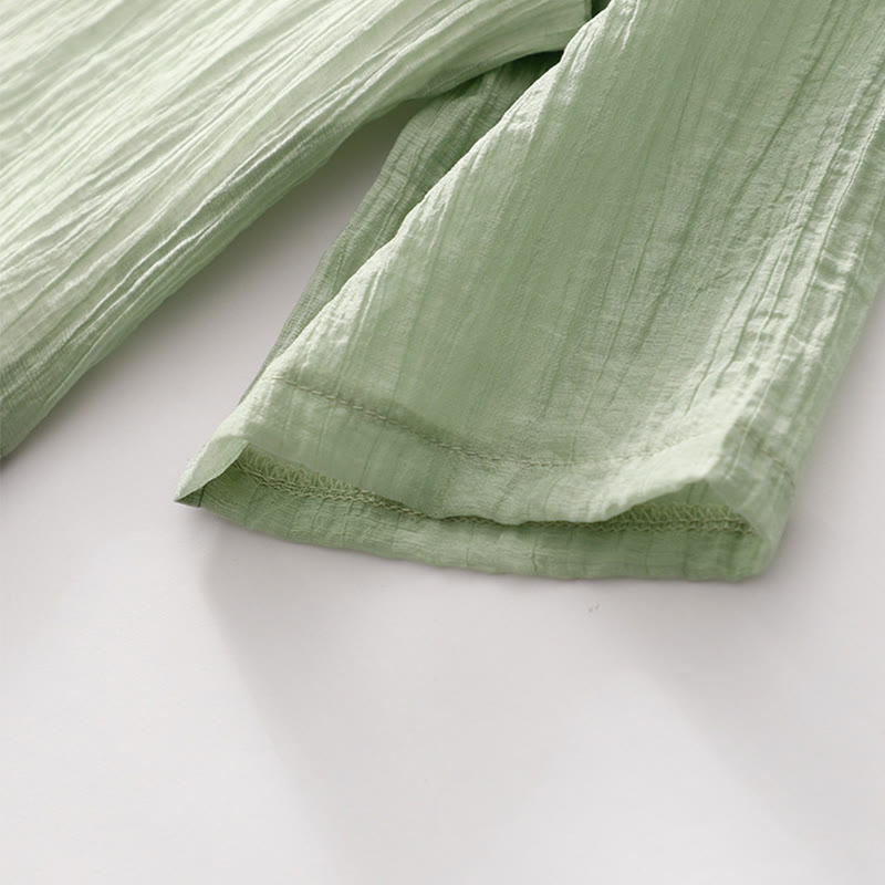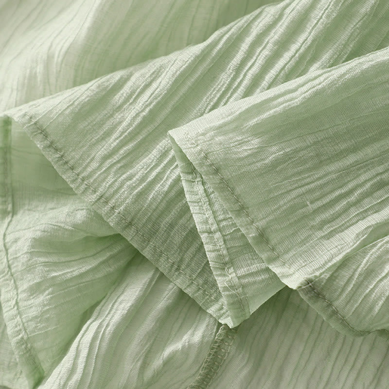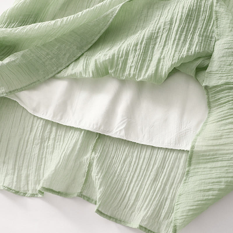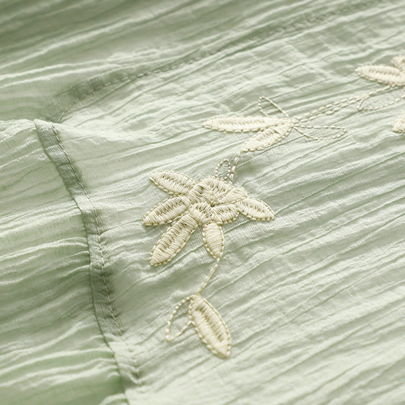 Buddha Stones Summer Casual Plain Embroidery Double Layer Short Sleeve Cotton Linen Midi Dress - PaleGreen - US8-10,UK/AU12-14,EU40-42 (2XL) - image 0