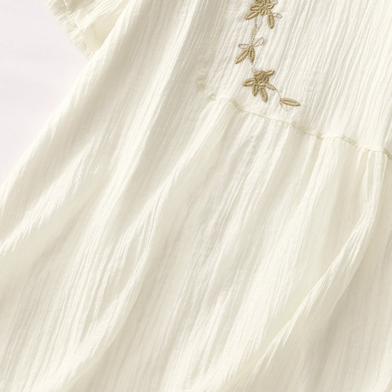 Buddha Stones Summer Casual Plain Embroidery Double Layer Short Sleeve Cotton Linen Midi Dress