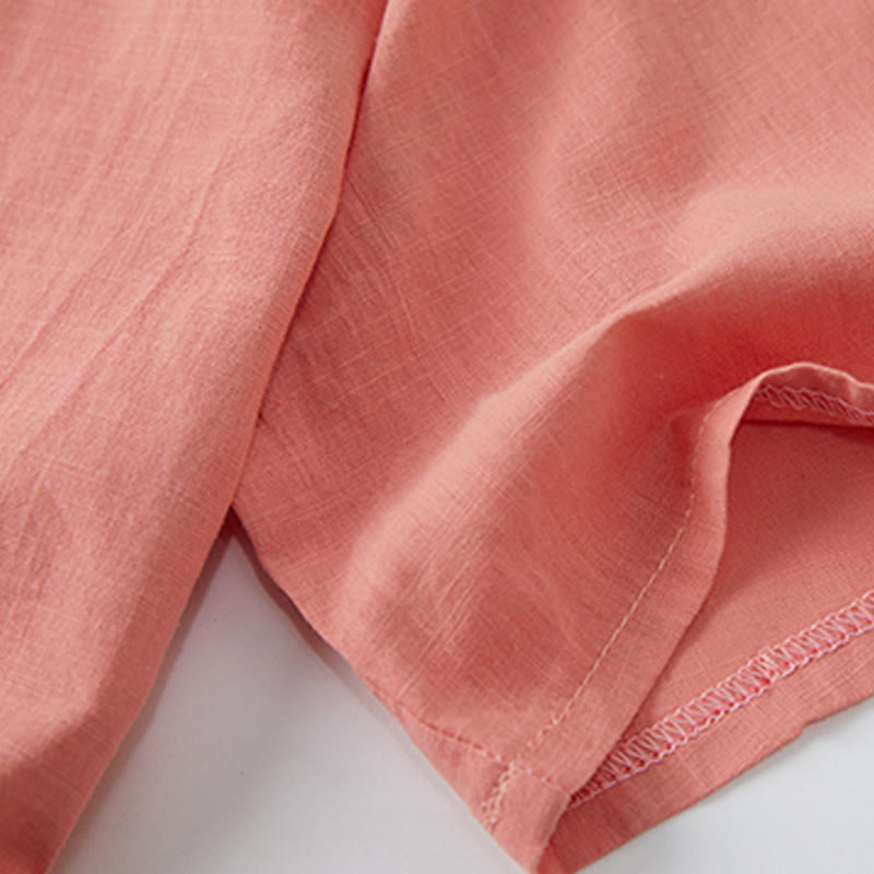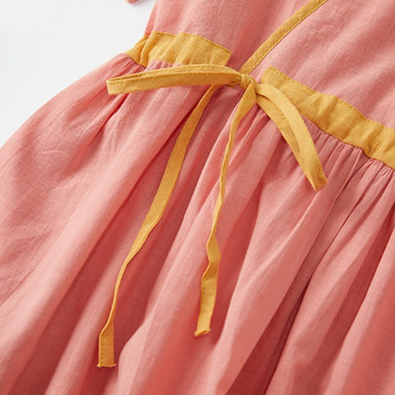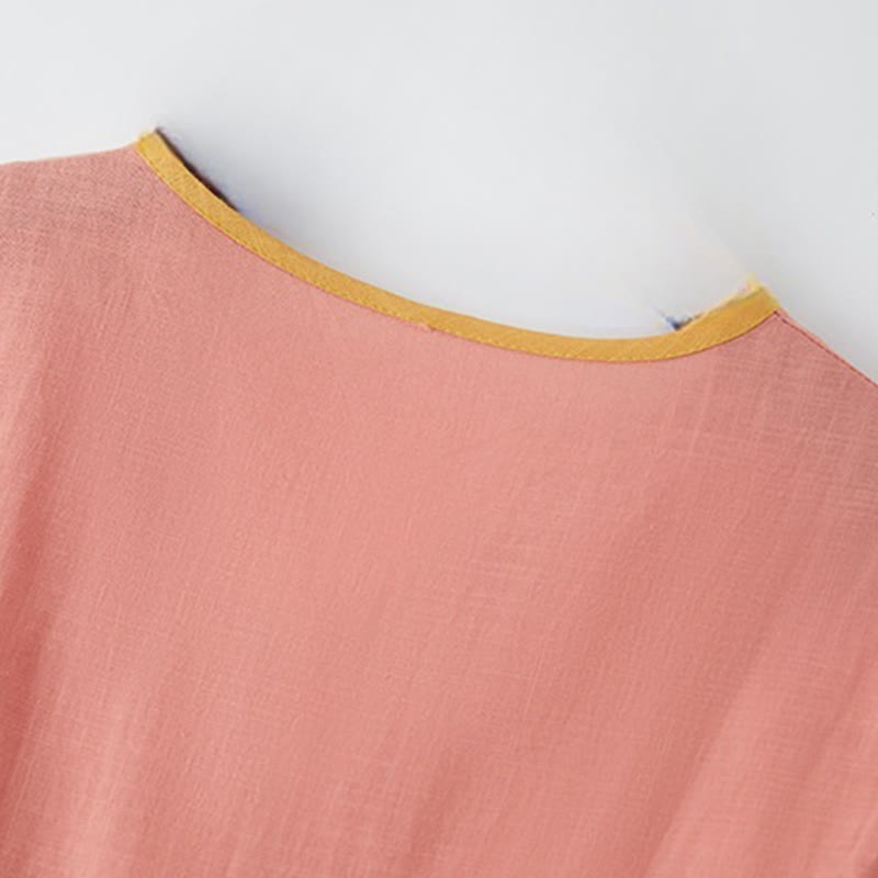 Buddha Stones Summer Casual Stitching Color Lace-up Design V-Neck Short Sleeve Midi Dress - LightCoral - US8-10,UK/AU12-14,EU40-42 (2XL) - image 0