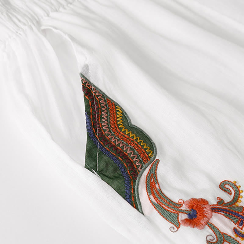 Buddha Stones Summer Embroidery Double Layer Cotton Linen Women's Wide Leg Pants With Pockets - White - US8-10,UK/AU12-14,EU40-42 (2XL) - image 24