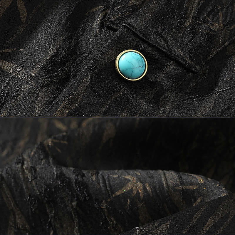 Buddha Stones Summer Golden Bamboo Jacquard Men's Half Sleeve Linen Shirt