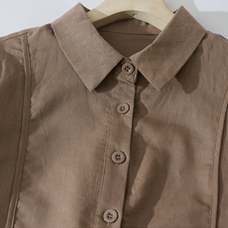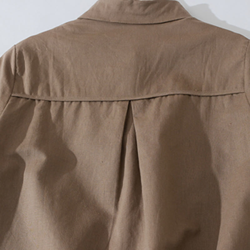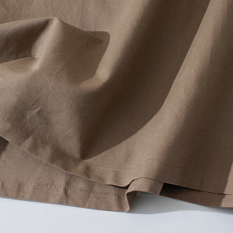 Buddha Stones Summer Retro Solid Color Button Design Short Sleeve Cotton Midi Dress With Pockets - Tan - US8-10,UK/AU12-14,EU40-42 (2XL) - image 9
