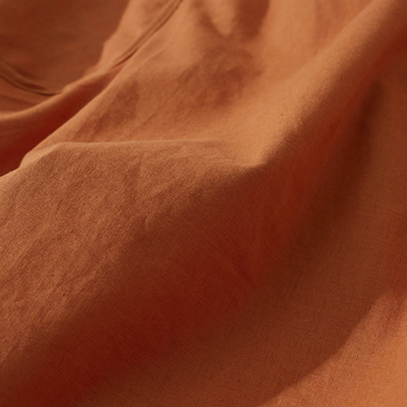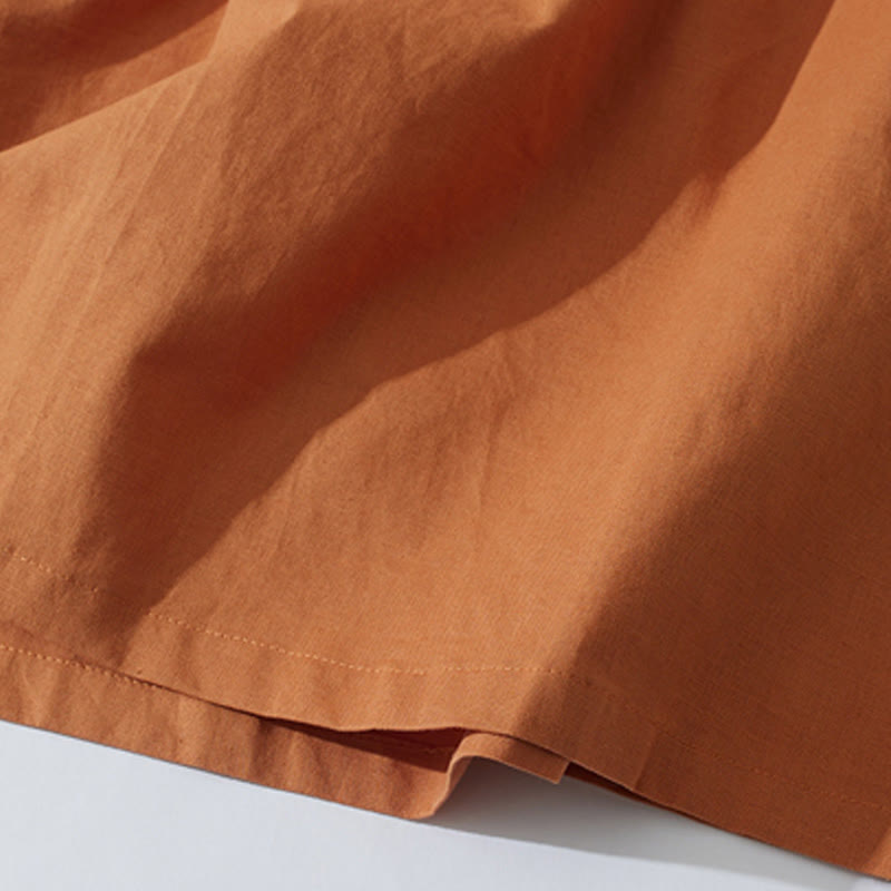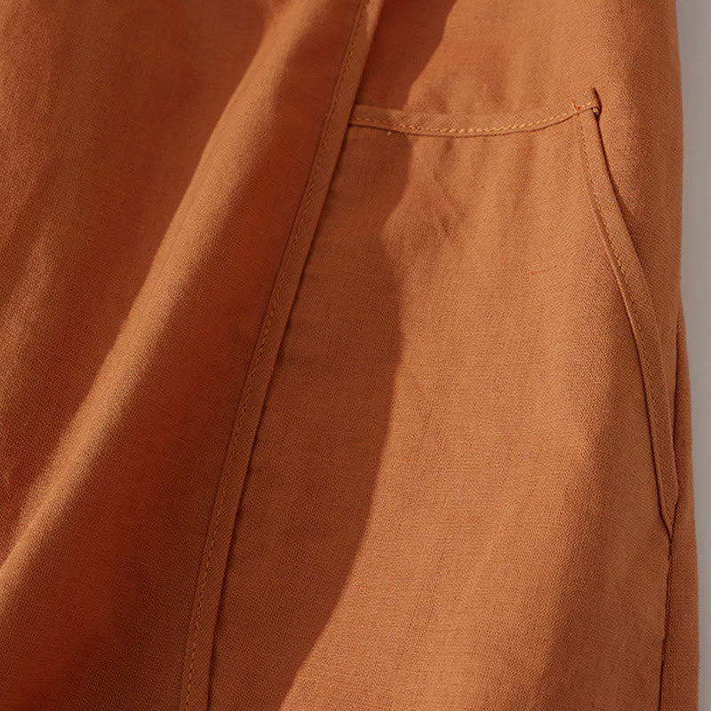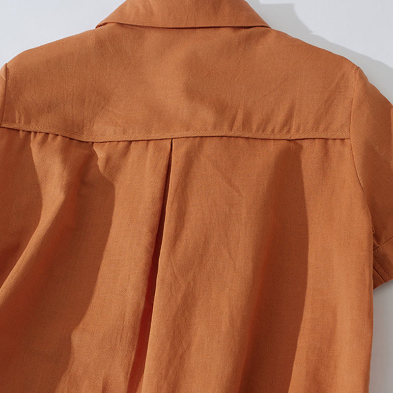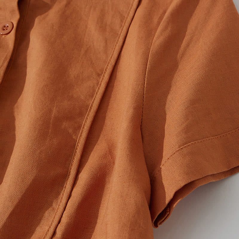 Buddha Stones Summer Retro Solid Color Button Design Short Sleeve Cotton Midi Dress With Pockets - DarkOrange - US8-10,UK/AU12-14,EU40-42 (2XL) - image 0