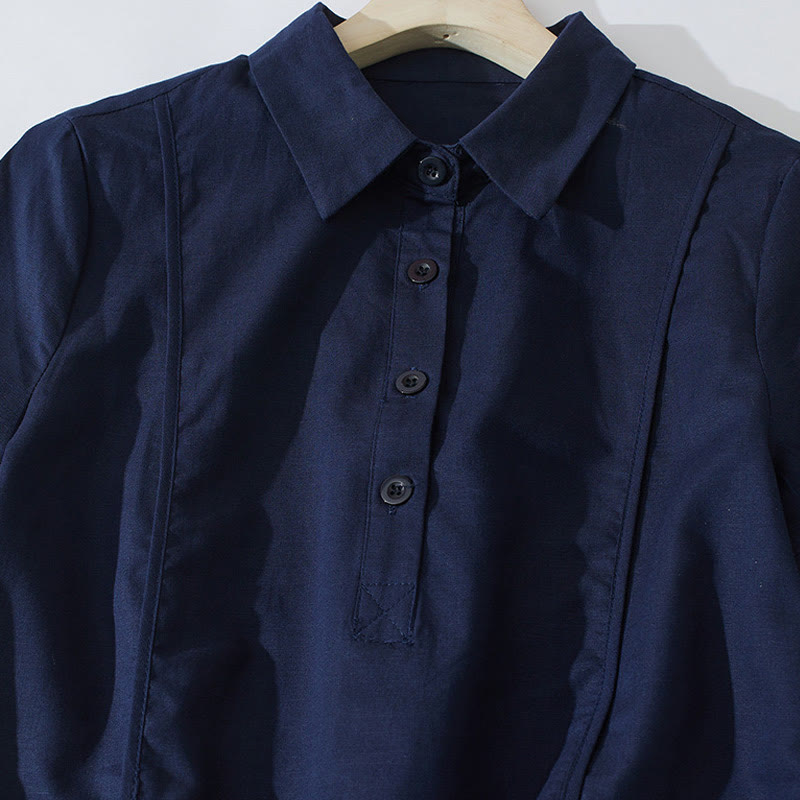 Buddha Stones Summer Retro Solid Color Button Design Short Sleeve Cotton Midi Dress With Pockets - MidnightBlue - US8-10,UK/AU12-14,EU40-42 (2XL) - image 16