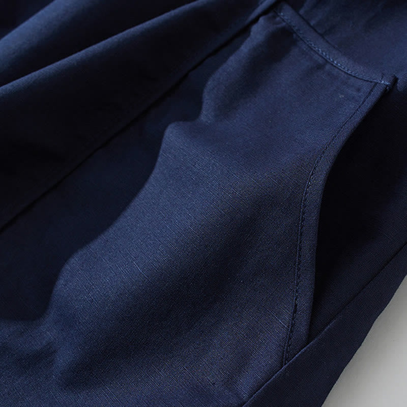 Buddha Stones Summer Retro Solid Color Button Design Short Sleeve Cotton Midi Dress With Pockets