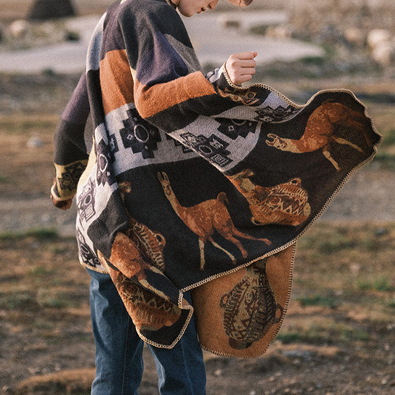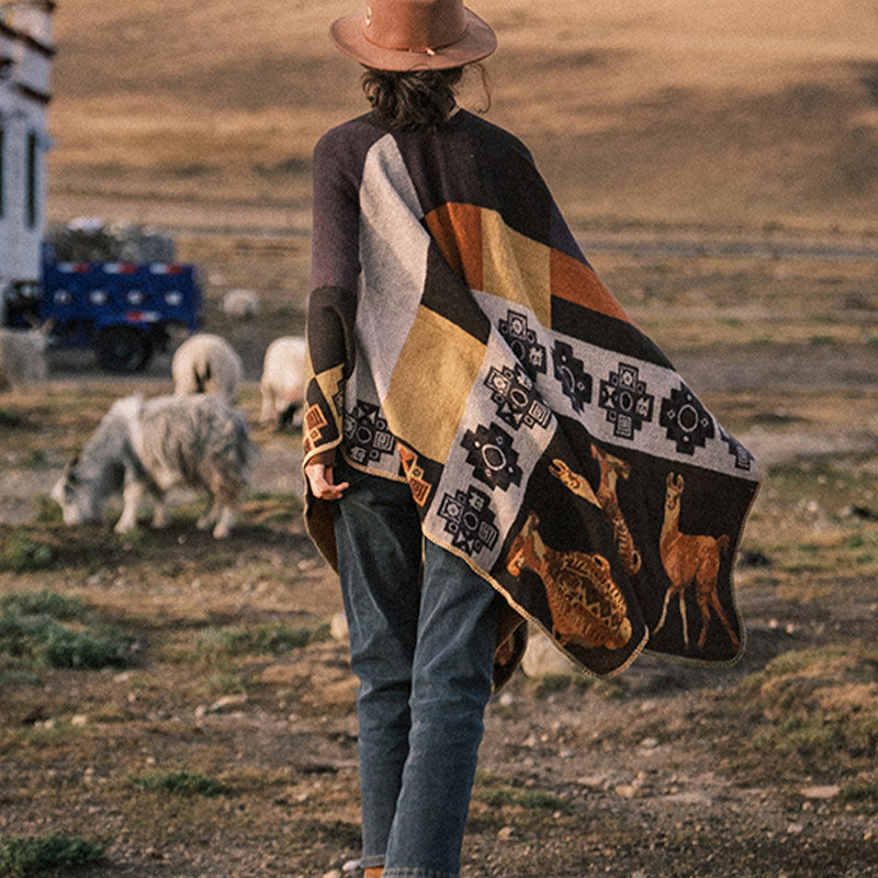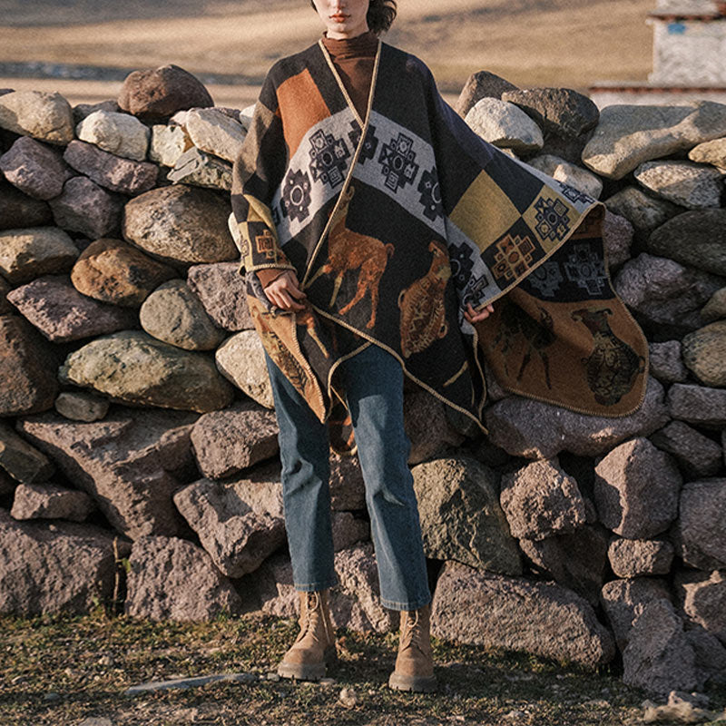 Buddha Stones Tibetan Shawl Deer Vase Geometric Shapes Winter Cozy Travel Scarf Wrap