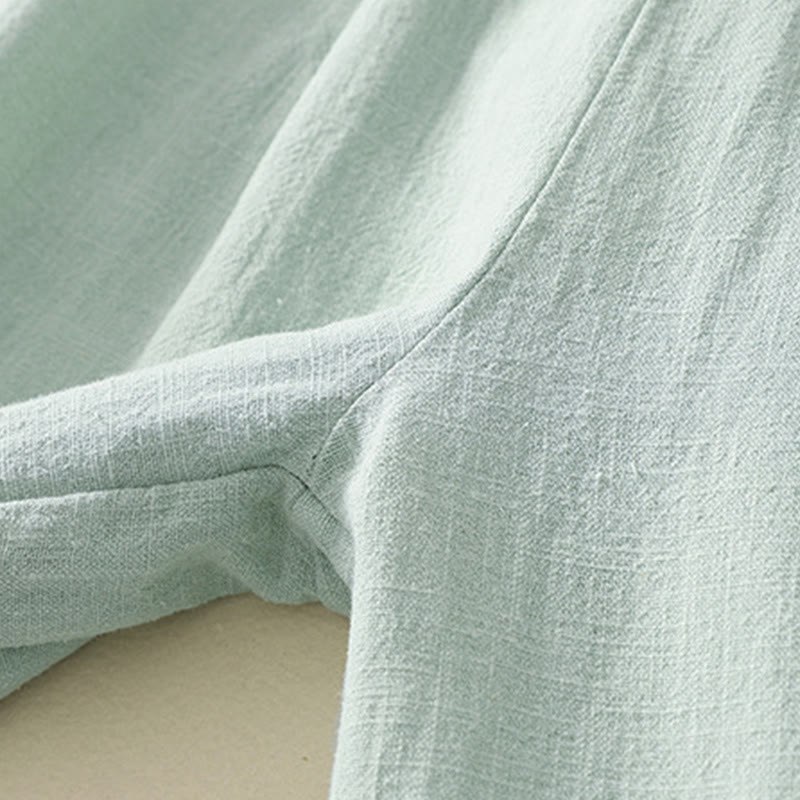 Buddha Stones Commute Solid Color Elastic Waistband Cotton Linen Women's Pants With Pockets