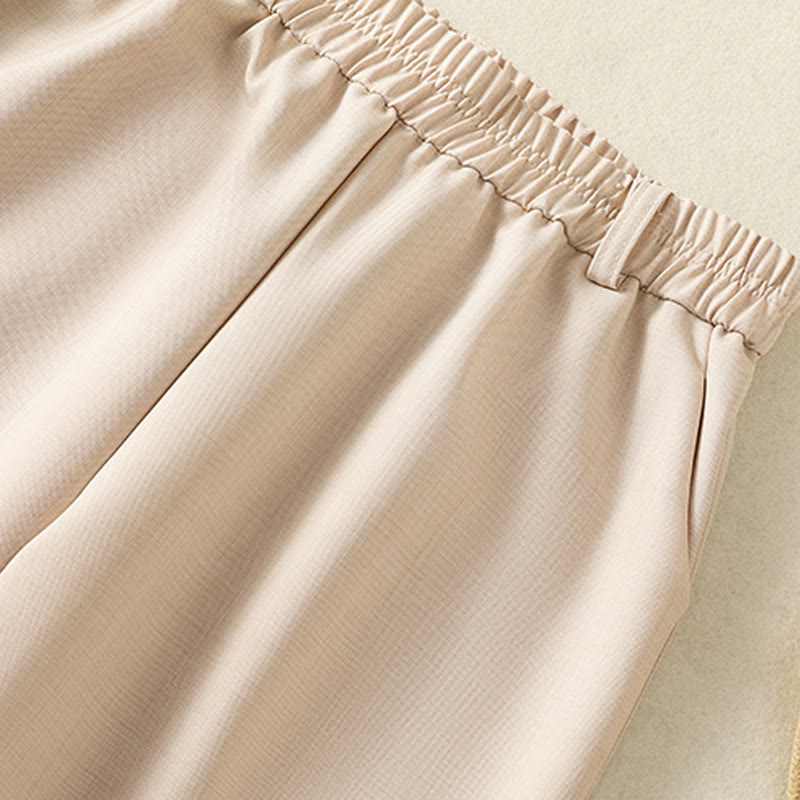 Buddha Stones Vintage Elastic Waistband Design Drawstring Women's Cotton Pants With Pockets