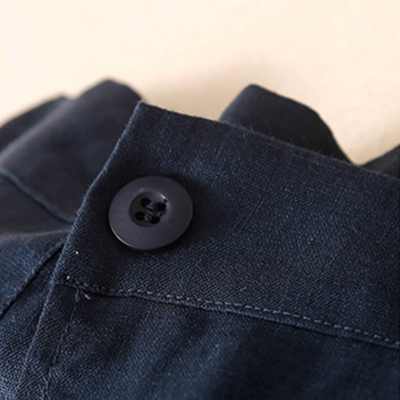 Buddha Stones Vintage Summer Asymmetrical High Waist Women's Cotton Linen Skirt With Pockets - MidnightBlue - US8-10,UK/AU12-14,EU40-42 (2XL) - image 3