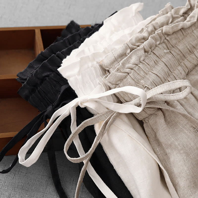 Buddha Stones Casual High Waist Ruffled Drawstring Design Women's Wide Leg Cotton Pants With Pockets - Linen - US12,UK/AU16,EU44 (2XL) - image 0