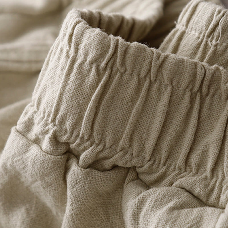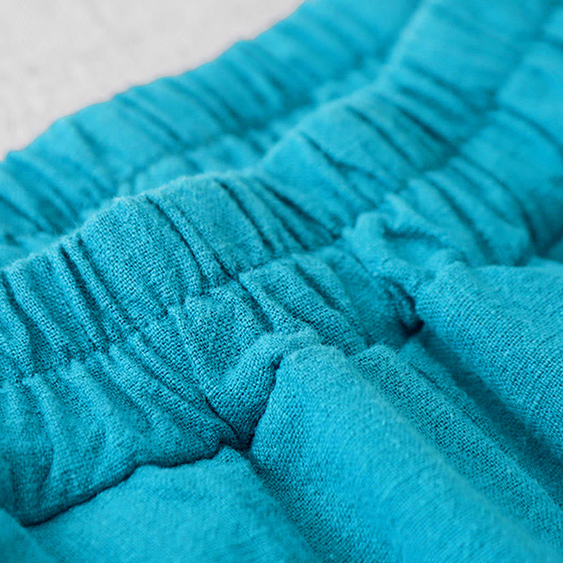 Buddha Stones Casual Plain 7-8 Length Women's Cotton Linen Harem Pants With Pockets