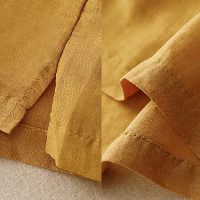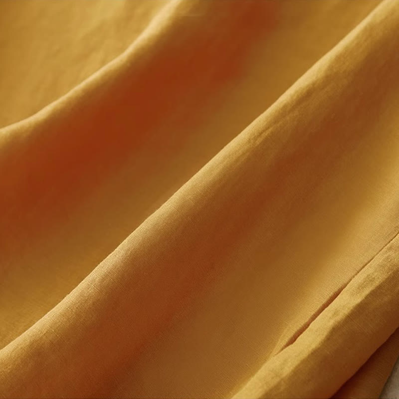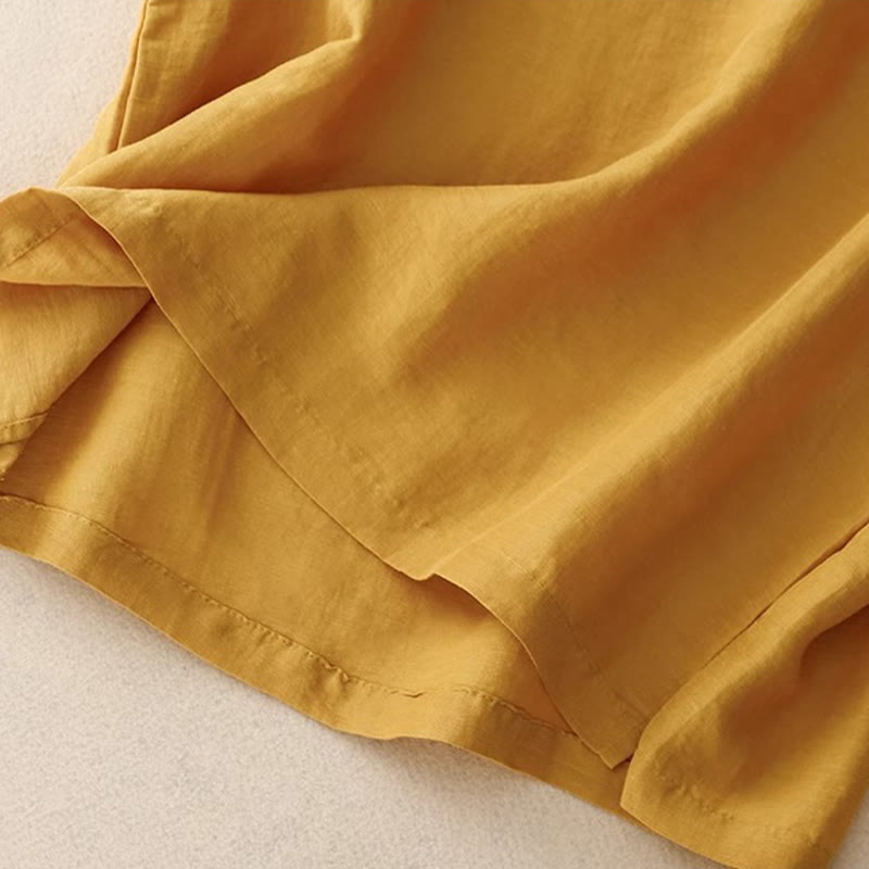 Buddha Stones Casual Pure Color Embroidery Patchwork Design Sleeveless Crew Neck Women's Cotton Linen Vest - Gold - US12,UK/AU16,EU44 (3XL) - image 0