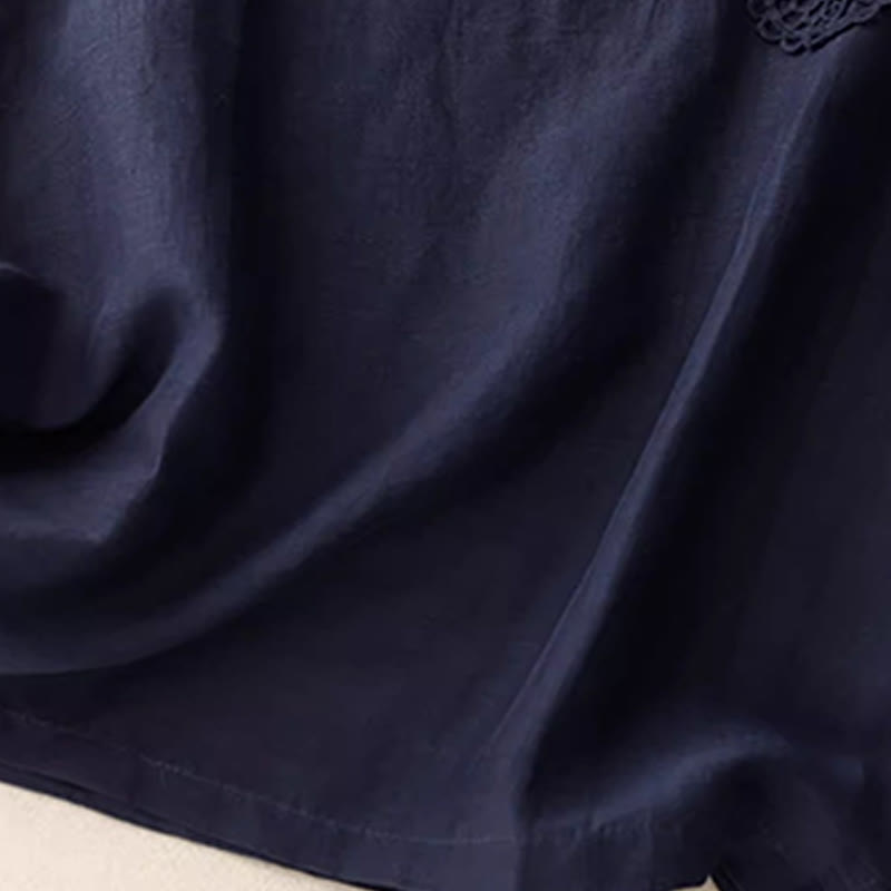 Buddha Stones Casual Pure Color Embroidery Patchwork Design Sleeveless Crew Neck Women's Cotton Linen Vest - MidnightBlue - US12,UK/AU16,EU44 (3XL) - image 7