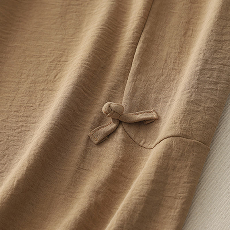Buddha Stones Commute Casual Plain Frog-Button Design Women's Harem Cotton Linen 7-8 Length Pants With Pockets